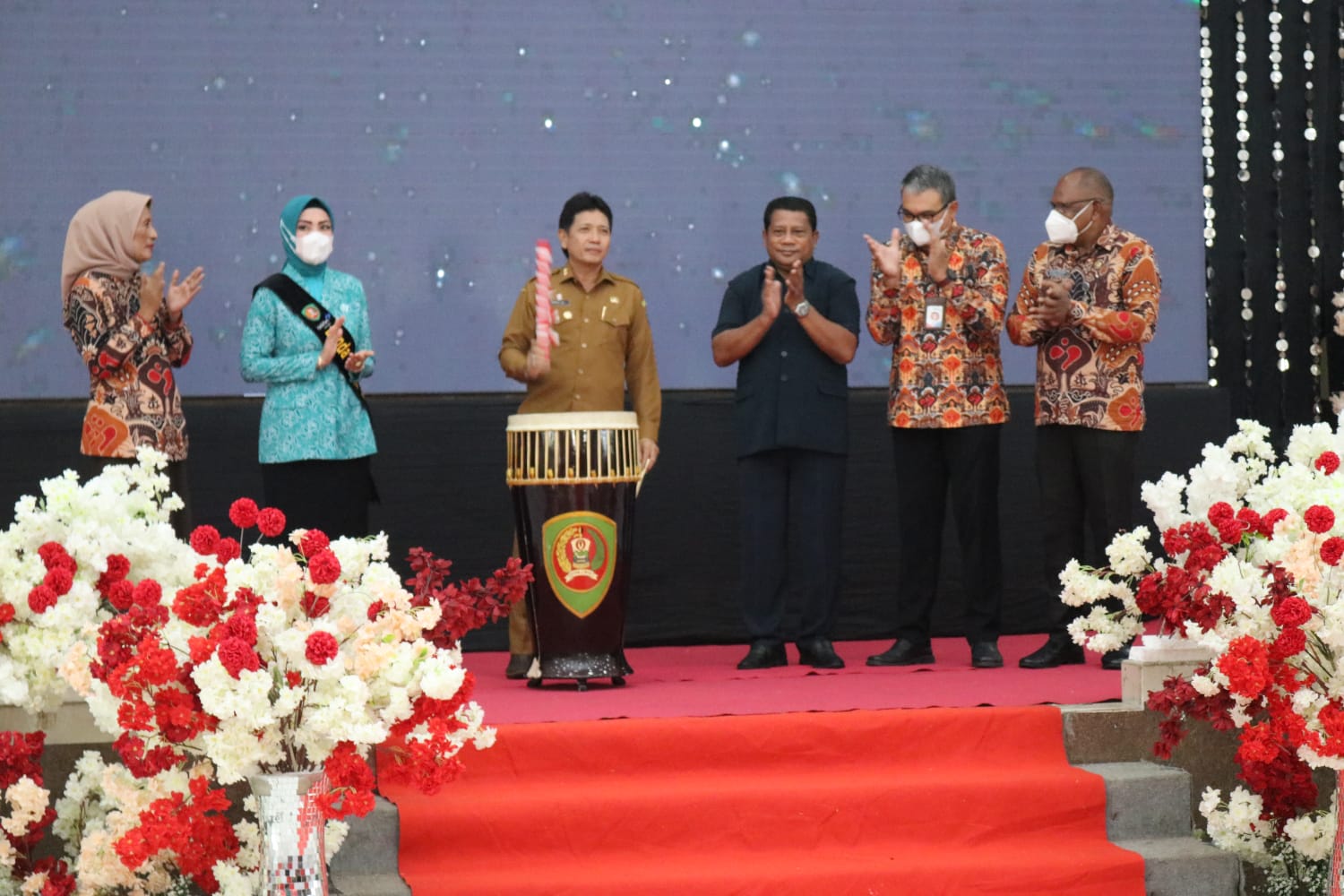 Ambon, MalukuUpdate.com- Peringatan Hari Keluarga Nasional (Harganas) ke-29 tingkat Provinsi Maluku Tahun 2022 berlangsung di Gedung Islamic Center, Senin, (25/7/2022). Peringatan ditandai dengan pemukulan tifa oleh Penjabat Sekda Maluku Sadali Ie didampingi Ketua DPRD Maluku Lucky Wattimury, Kepala Pusat Penelitian dan Pengembangan Kependudukan BKKBN RI., Dr. Indra Murty Surbakti, Ketua Parenting Maluku Ny. Widya Pratiwi Murad, Kepala Perwakilan BKKBN Provinsi Maluku Sarles Brabar dan Plt. Kadis Disdukcapil Maluku Dewi Pattimahu, sebagai tanda ucapan selamat Hari Keluarga Nasional.