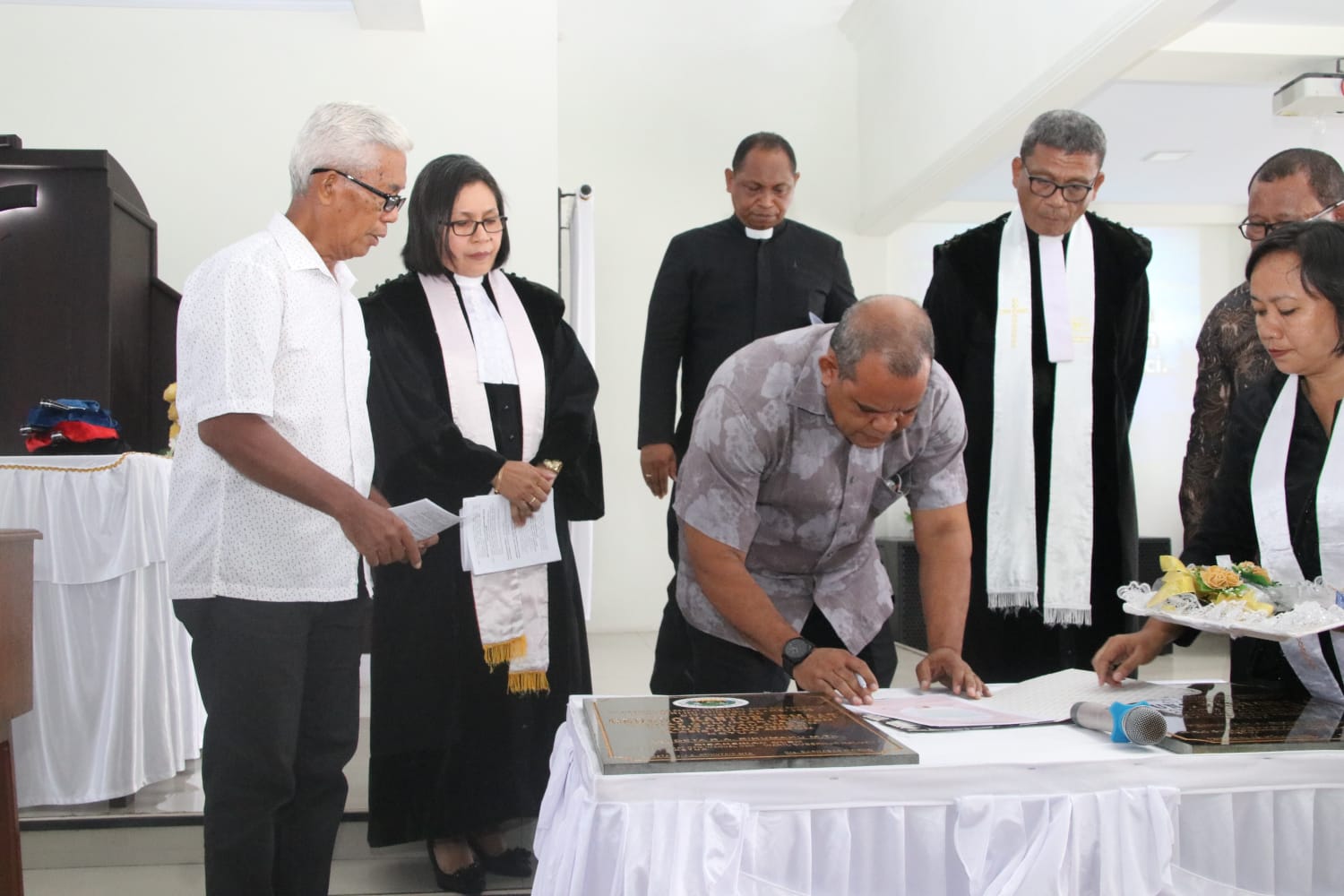Ambon, MalukuUpdate-Staf Ahli Gubernur Bidang Ekonomi, Investasi dan Pembangunan, Demy Lilipory, Minggu (22/5/2022) mewakili Gubernur Maluku, Murad Ismail menghadiri acara Peresmian Gedung Kantor dan Pastori IV GPM Imanuel OSM, Kota Ambon.