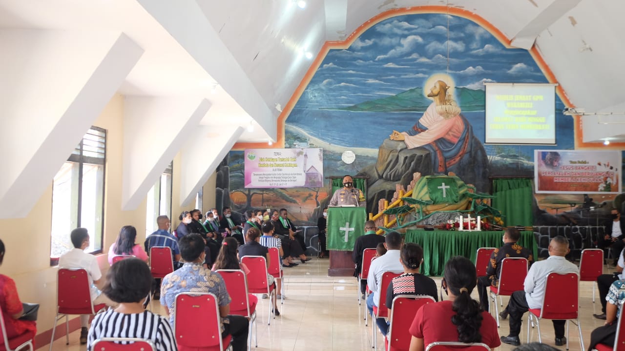 Dalam safari tersebut, Kapolres menyampaikan beberapa himbaun kepada masyarakat usai ibadah pagi di Gereja Raapsary, Klasis Leti Moa Lakor.