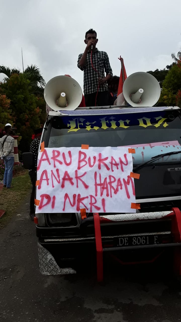 Aksi demo di Kantor Bupati dan DPRD Kepulauan Aru, Kamis (17/09), menyikapi tidak dilibatkannya daerah mereka dalam program pemerintah pusat tersebut.