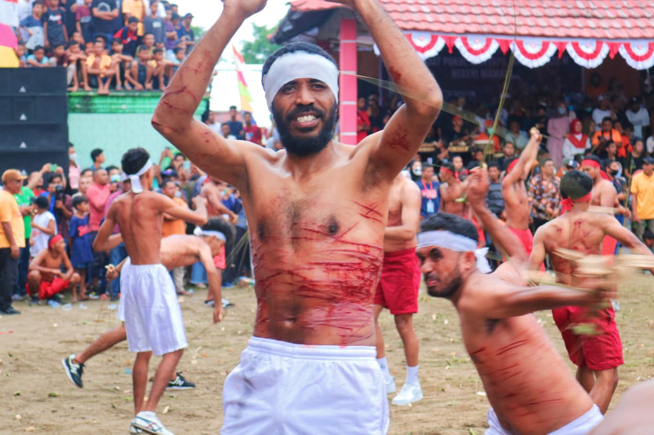 Ambon, MalukuUpdate.com,- Penjabat Sekretaris Daerah Provinsi Maluku Sadali Ie, menghadiri acara adat Pukul Sapu Lidi di Negeri Morela dan Mamala, Senin, (09/05/2022).