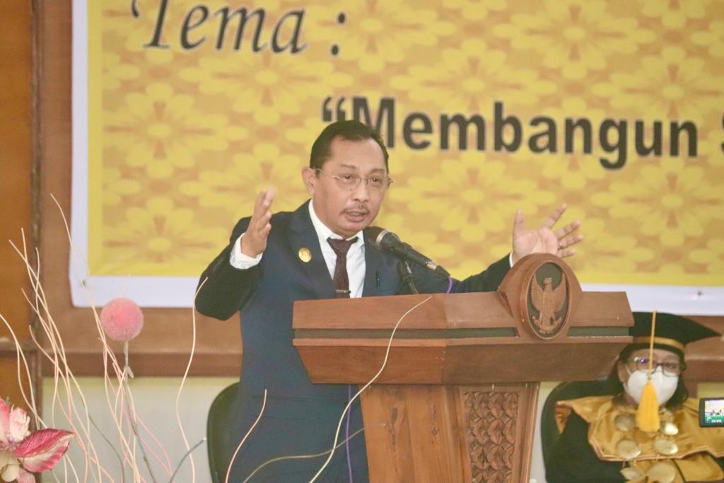 “Keberhasilan seorang lulusan perguruan tinggi di dalam masyarakat, ditentukan oleh kemampuan menyesuaikan diri, mencapai target dan menjawab tantangan. Sebab, kompetisi yang ketat dalam dunia kerja tidak bisa dihindari. Artinya, wisuda ini bukan akhir kita belajar melainkan harus tekun dalam mengembangkan kemampuan analisa dan memecahkan masalah kemasyarakatan / kemanusiaan, karena permasalahan di dunia nyata bersifat holistik serta multidimensional,” pungkasnya.