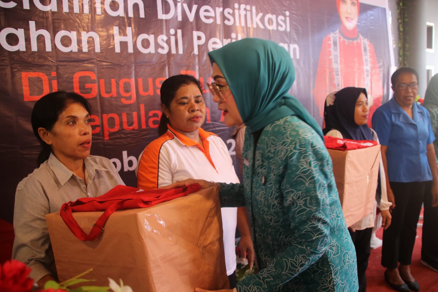 Dalam mendukung usaha para pelaku perikanan, pada kesempatan itu juga, Ketua FORIKAN Maluku, Widya Pratiwi Murad berkesempatan menyerahkan bantuan peralatan olahan hasil perikanan kepada 6 kelompok peserta pelatihan. Masing-masing kelompok yakni, kelompok Lestari Wangel, Kelompok Kakap, Kelompok Scombridae, Kelompok Nur Rezky, Kelompok WKRI dan Kelompok PKK Kab, Kep. Aru. (Biro Administrasi Pimpinan Setda Maluku)